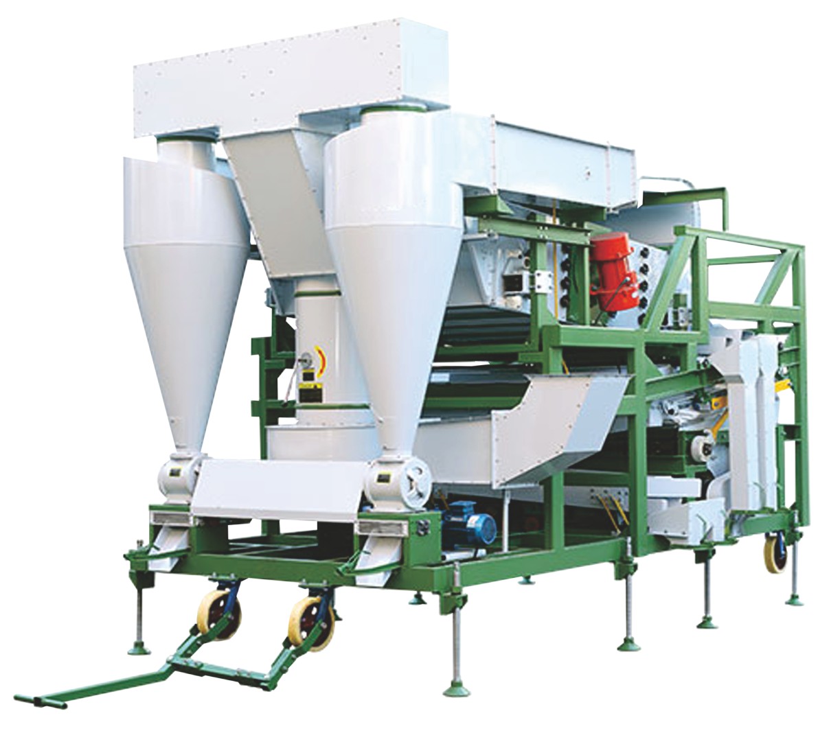 成套設備由以下主機組成:5XCQ 型種子初清機、5XCM 型種子除芒機、5X型風篩式種子精選機、5XZ型比重式種子精...